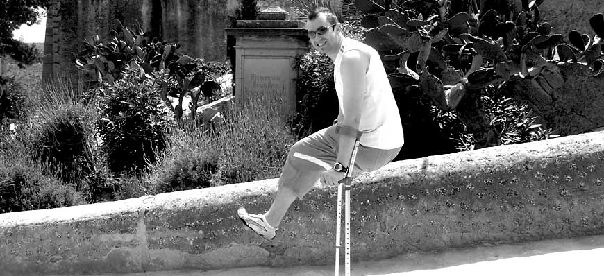 While he was mobile, his spirits were high. Sport played a key role. He adapted kit and equipment to suit his new needs; nothing could be found off-the-peg; Designer sportswear non-existent for the young amputee.